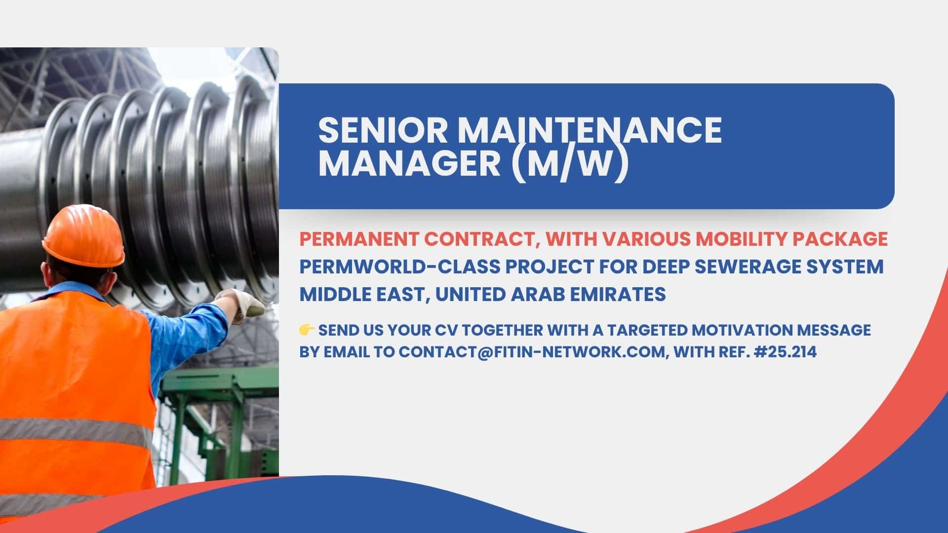 This position within the Operation & Maintenance company (O&M) company is Senior Maintenance Manager (M/W) with reference #25.214