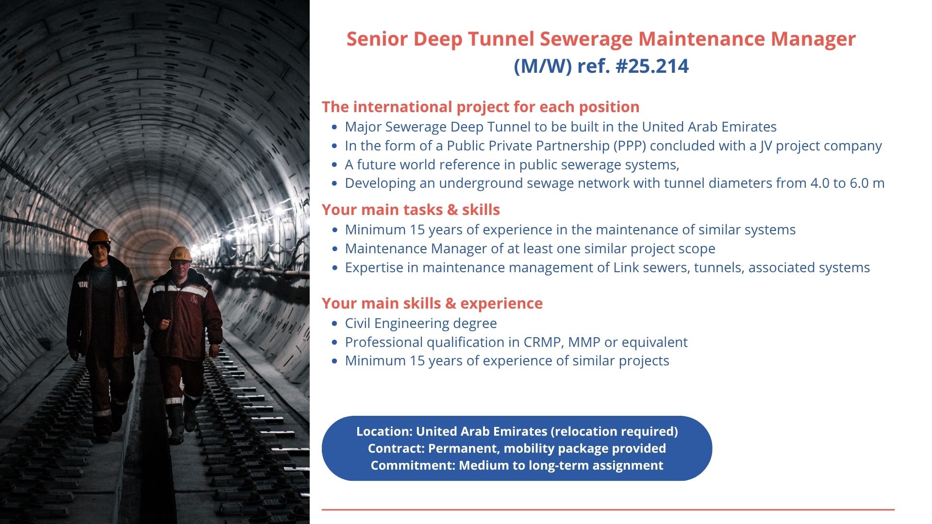 UAE – Senior Deep Tunnel Sewerage Maintenance Manager (M/W)